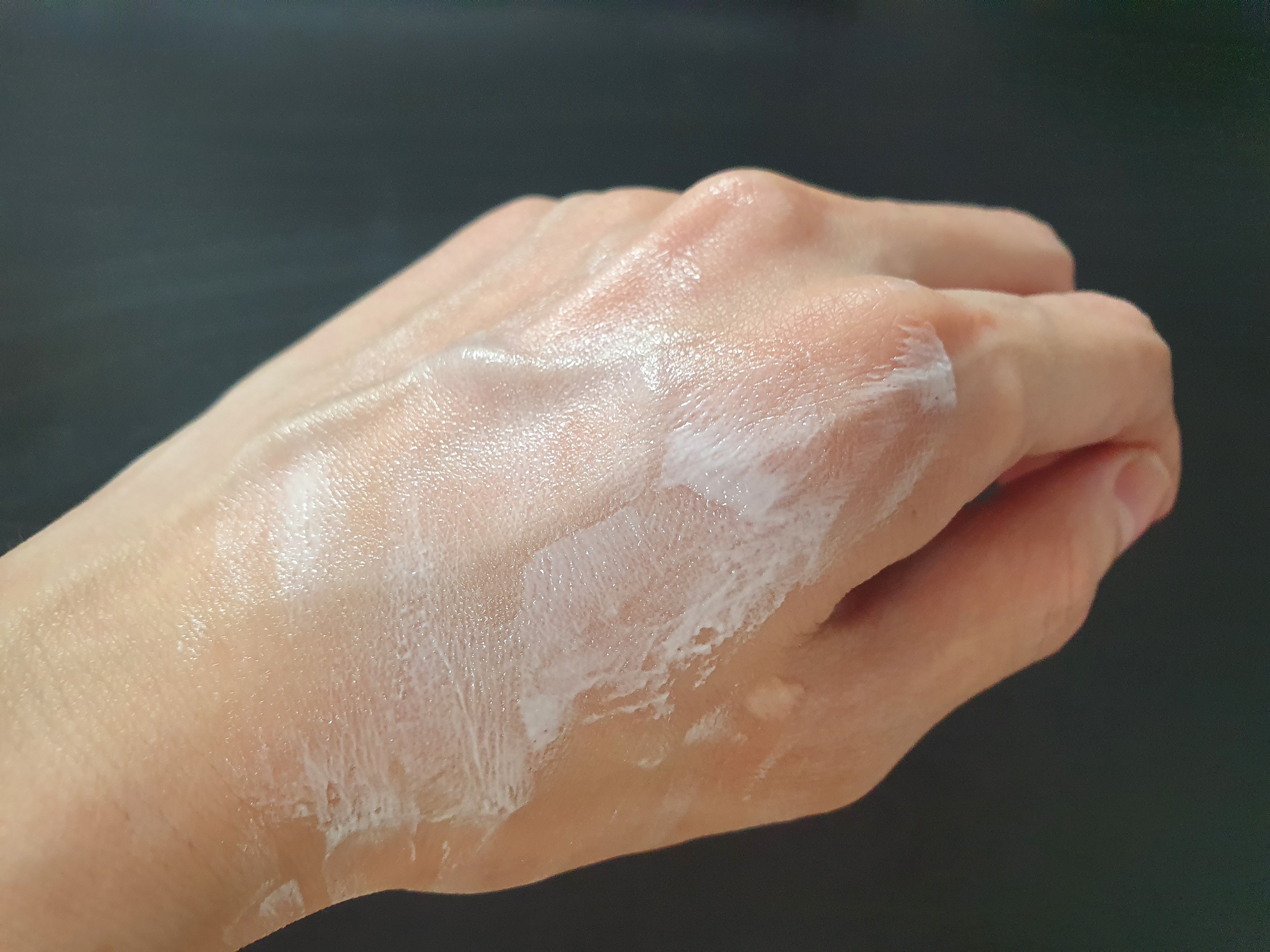 흡수 안된 상태에서 바르면 꾸덕한 제형이라 그런지 흡수가 안되고 로션과 섞이면서 겉도는 현상이 일어나는 단점이 있습니다.